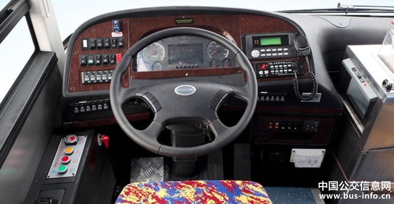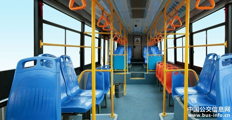 高靠背司機(jī)椅(減震可調(diào)式),工程塑料硬面乘客座椅,噴塑輥花扶手,防護(hù)欄,無吊環(huán),駕駛員后、前后乘客門后有護(hù)欄板