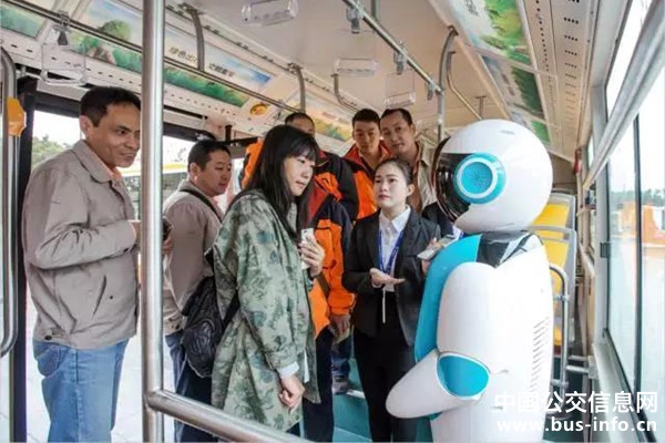 就乘客而言,C10裝備了國內首款基于公交場景的車載智能出行機器人。這款機器人高約163厘米,頭部能呈現100多組豐富表情,自帶拍照互動功能;胸前擁有一塊12英寸的觸控彩屏,公交乘客可通過機器人自帶WiFi熱點功能進行面對面或遠程控制,指導其揮臂、轉頭等動作。通過與這款機器人互動,乘客們還能獲得公交線路周邊的站點、換乘信息、娛樂生活資訊、聊天交友的功能。