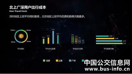 四、北上廣深一線城市相比較,深圳地區白領上班平均用時最高,北京地區上班人群平均花費和換乘次數最多。