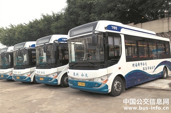 近日,細心的市民可能會發現,泉州街頭出現了不少藍白相間的小清新式的公交車。據泉州公交發展有限公司方面介紹,目前新購的70輛8米長的純電動公交車已陸續投用在1路、8路、14路等線路上。4條社區巴士線路,也集體換新,將原來租用的中巴車全部換為5.99米長的LNG(清潔能源)公交車。