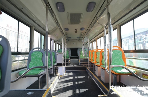 登上車后可以看到,車內飾板主體顏色采用乳白色,軟座為灰綠兩色搭配;乘客扶手桿為不銹鋼材質,且設置更加科學、人性化,方便抓扶。車子啟動平穩,運行時聽不到發動機噪音。