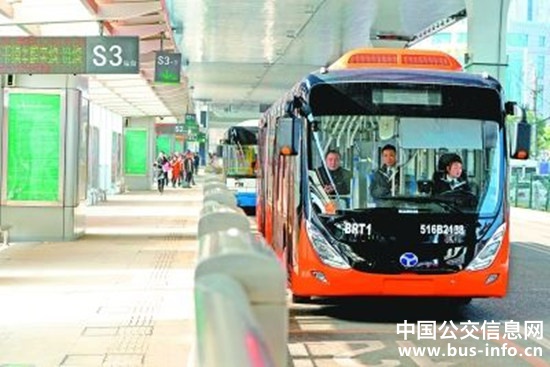 BRT1路配備了30臺18米長的鉸接式純電動客車,大玻璃配明艷的橙色外殼,空車測試時,吸引了沿途市民的目光。