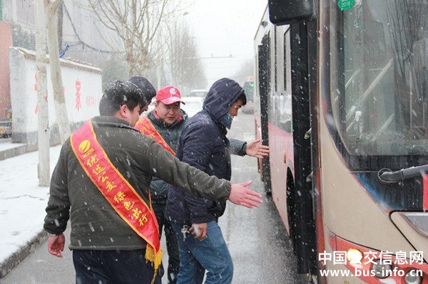 寒風中,雪地上,鄭州公交四公司的公交人爭分奪秒,調度員給一輛輛待發的車長叮囑安全、每位車長出車前做出車前三檢;為了給乘客提供安全乘車環境,管理人員從點滴小事做起,采取踏板防冰防滑措施,車廂內的空調提前打開,使乘客在不經意間感受公交舒心的服務。全體管理人員奔赴各站點、候車亭鏟冰除雪;公交志愿者堅守崗位,引導乘客選擇車次和上下車安全,確保進站安全和候車有序。