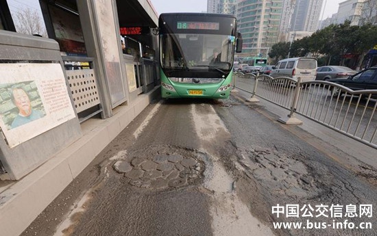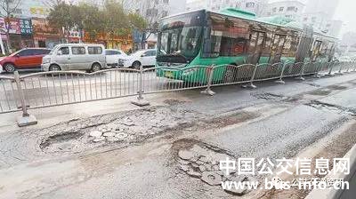 河南省鄭州市快速公交未來路、航海東路沿線專用道站點附近道路坑洼不平,最大的坑直徑竟達1米,車輛通過時顛簸嚴重,市民戲言坐車如同“坐花轎”。