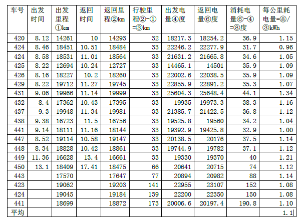 上海永磁12m 大巴耗電統(tǒng)計(jì):