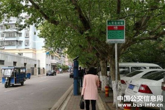 在人民醫(yī)院站,公交9路車32個站點名擠在寬度約50厘米的站牌上,而這個只有一路公交車的站牌已經(jīng)是簡陽市區(qū)內(nèi)字比較大的站牌了。