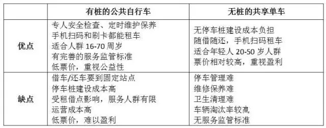 有樁的公共自行車與無樁的共享單車優缺點對比表