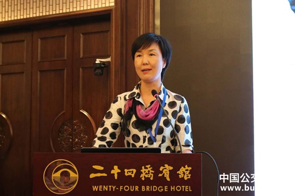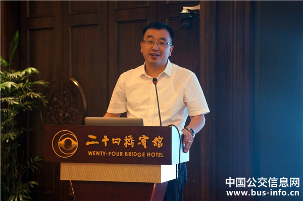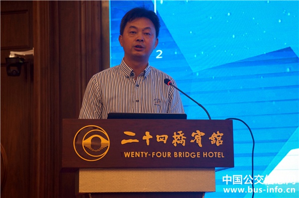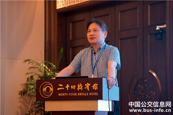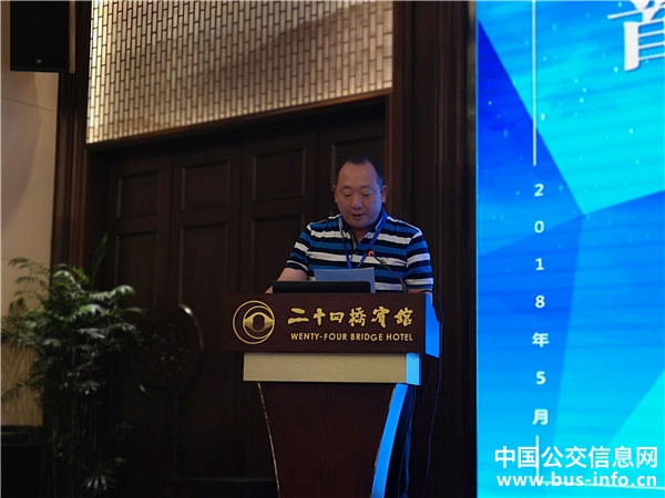 揚(yáng)州亞星客車股份有限公司國內(nèi)營銷公司常務(wù)副總經(jīng)理王旭作《亞星客車在公交領(lǐng)域的應(yīng)用》演講