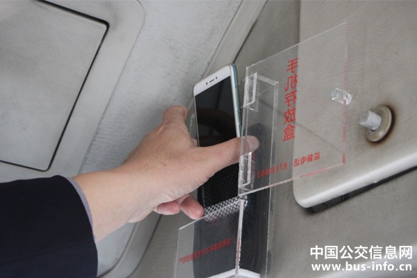 駕駛員執行營運任務前須把手機放進手機盒,保障行車安全