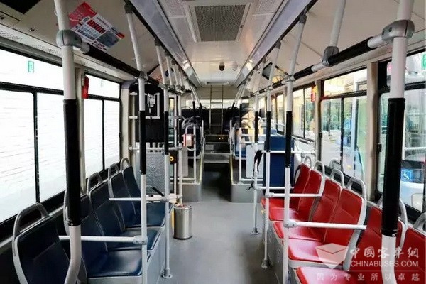 福田歐輝BJD-WG120FN型雙源無軌電車采用了低地板結構,方便乘客上下車,并配有冷暖空調、車內高清LCD信息顯示屏、可循環播放站名表、票價表等標識,提高了乘車舒適度和服務質量。