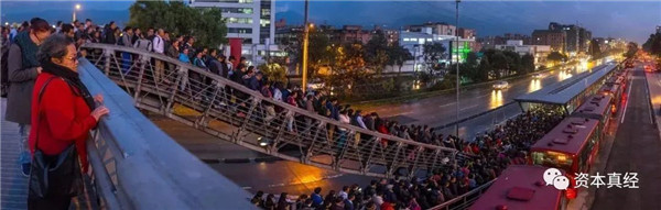 根據(jù)Transit App Moovit的數(shù)據(jù),波哥大公共交通系統(tǒng)每5名乘客中就有一人在一次出行中轉(zhuǎn)車兩次。這張照片捕捉了2017年的乘客,他們正在排隊(duì)等著登上波哥大TransMilenio的BRT。(圖片來源:Flickr)