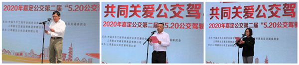 中國土木工程學(xué)會城市公共交通分會常務(wù)副秘書長袁建光,上海嘉定交通發(fā)展集團有限公司黨委書記、董事長徐崧鵬,上海市嘉定區(qū)交通委員會黨組書記、主任管紅梅分別為此次活動致辭。