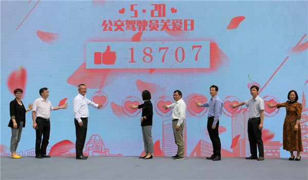 截止目前,已有18713位市民為公交駕駛員送上了祝福?;顒蝇F(xiàn)場,領(lǐng)導(dǎo)們共同為“5.20公交駕駛員關(guān)愛日”活動傳遞祝福,為最美公交駕駛員點贊。