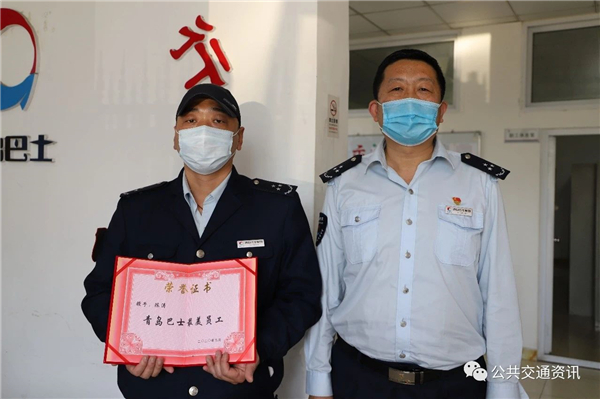 20日上午,在青島公交集團市北巴士四分公司舉行了一場青島巴士“最美員工”授予儀式,市北巴士公司黨委副書記李偉為陳濤頒發(fā)青島巴士“最美員工”榮譽證書。失主李女士的家屬也帶著錦旗及感謝信趕到現(xiàn)場向其表示祝賀,并再次對他表達了感謝。