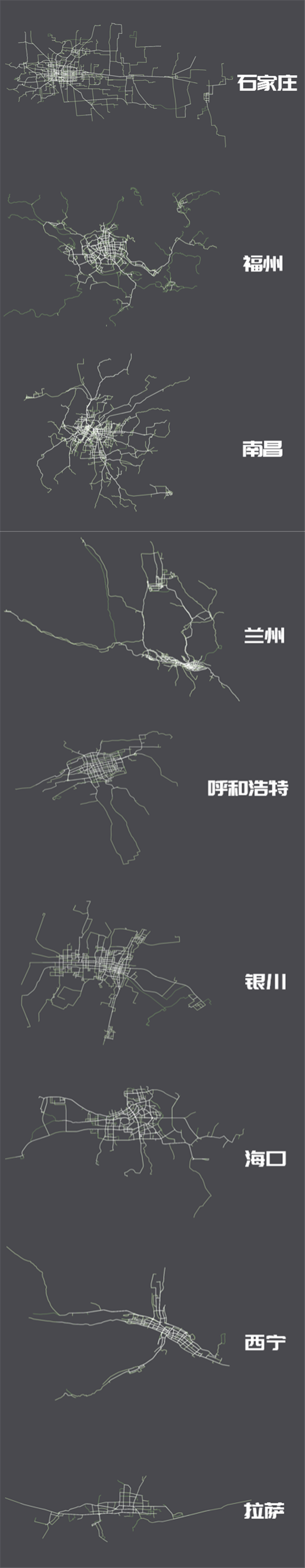 9個中心城市的公交線路圖(石家莊、福州、南昌、蘭州、呼和浩特、銀川、海口、西寧、拉薩)。注:相關公交線路數據來源于網絡,在完整性和準確性方面不敢保證,僅供參考。