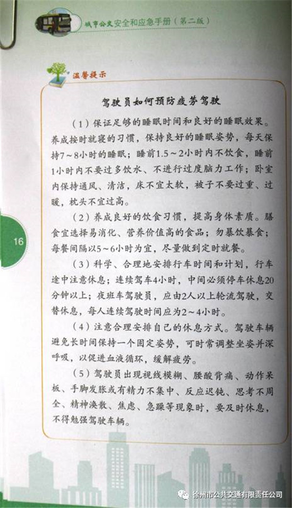 《城市公交安全和應急手冊》(第二版)由交通運輸部運輸司編輯,一共六章,107頁。該手冊從細節入手,綜合國內外安全駕駛和應急情況處置的經驗,為公交車駕駛員、乘務員和廣大乘客提供一些易于掌握、便于操作、行之有效的安全常識和應急處置方法,希望您能夠從中受益。