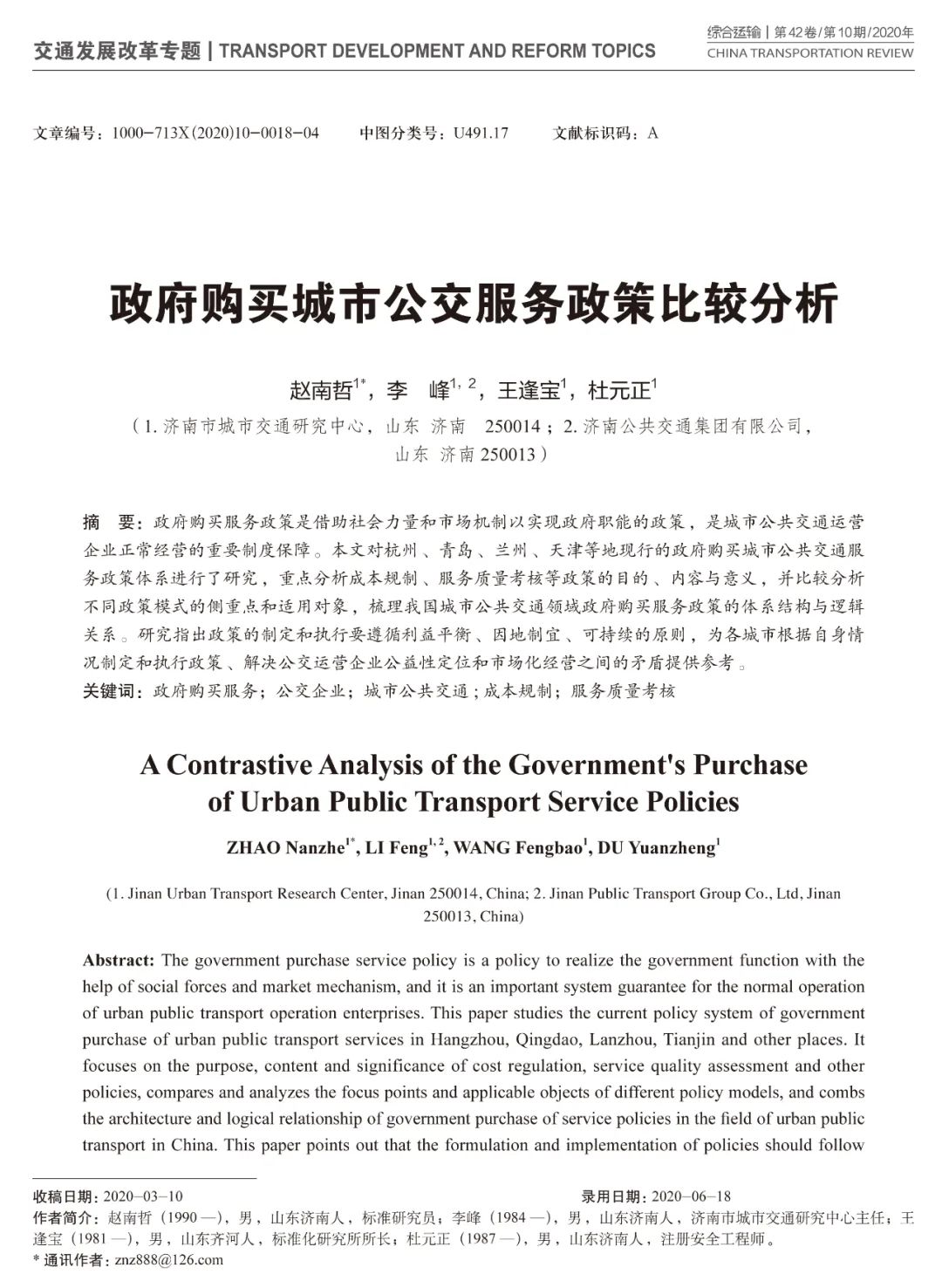 近日,濟(jì)南市城市交通研究中心科研人員撰寫(xiě)的學(xué)術(shù)論文《政府購(gòu)買(mǎi)城市公交服務(wù)政策比較分析》發(fā)表于國(guó)家發(fā)展和改革委員會(huì)綜合運(yùn)輸研究所主辦的學(xué)術(shù)月刊《綜合運(yùn)輸》2020年第10期。