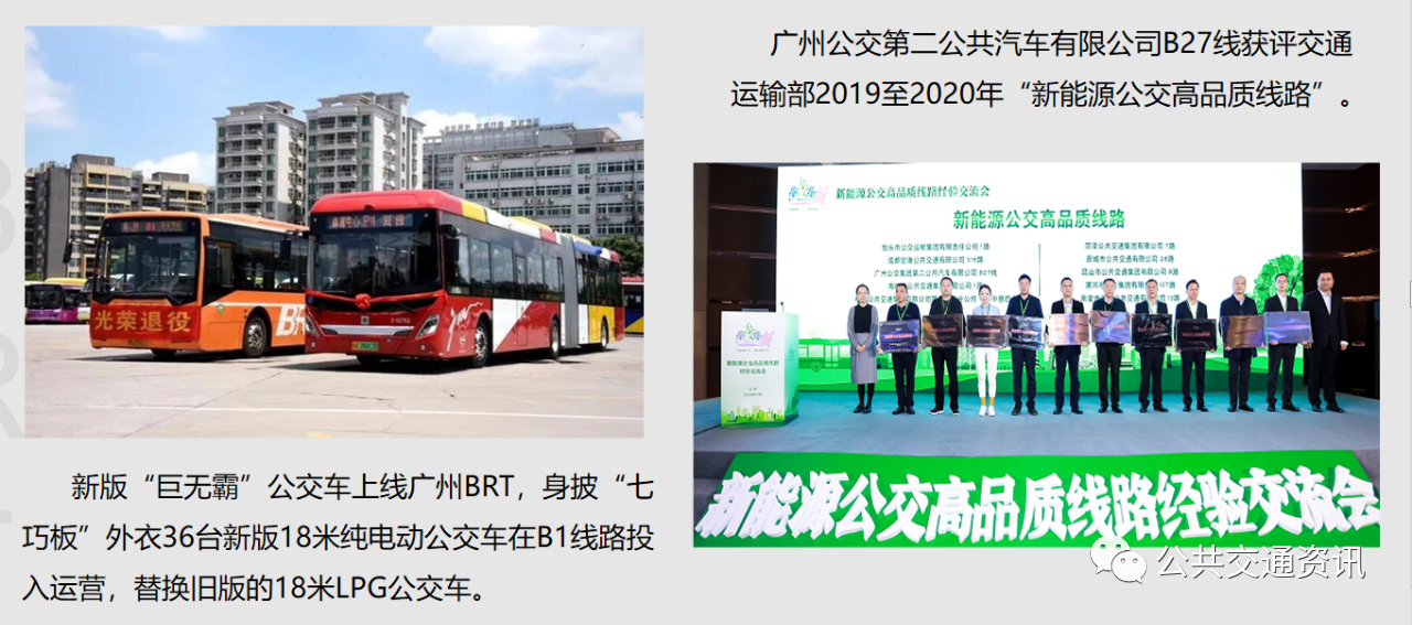 36臺身披“七巧板”外衣的新版18米純電動“巨無霸”公交車上線廣州B1線路投入運營;廣州B27線獲評交通運輸部2019至2020年“新能源公交高品質線路”。