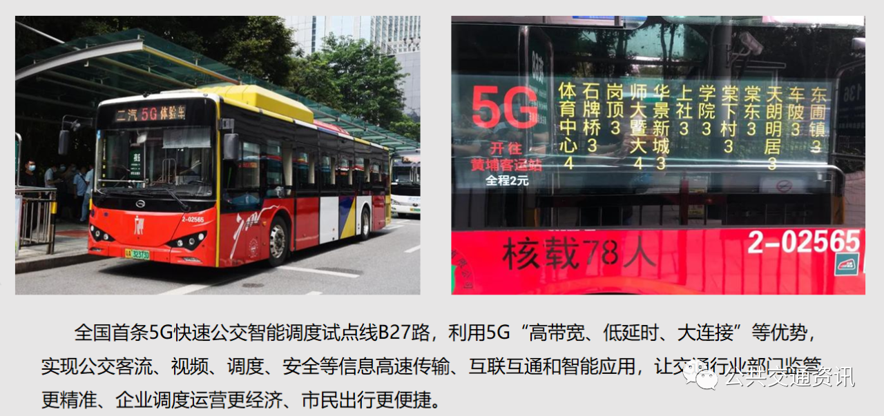 全國首條5G快速公交智能調度試點線B27路,實現公交客流、視頻、調度、安全等信息高速傳輸、互聯互通和智能應用,讓交通行業部門監管更精準、企業調度運營更經濟、市民出行更便捷。