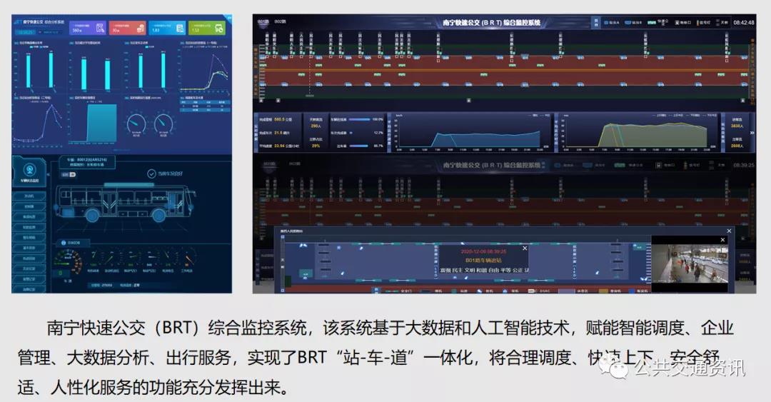 綜合監控系統,該系統基于大數據和人工智能技術,賦能智能調度、企業管理、大數據分析、出行服務,實現了BRT“站-車-道”一體化。