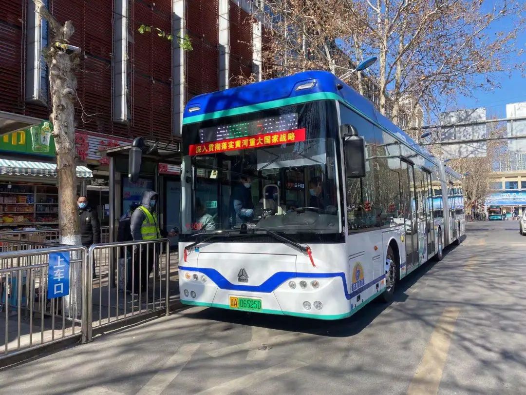 節(jié)日期間,濟南公交認真落實工作場所清潔、消毒、通風(fēng)要求,對BRT站臺、公交場站落實消毒措施;嚴格執(zhí)行營運車輛不間斷消毒、夜間深度消毒、一趟一通風(fēng)、開窗運行的標準;認真做好乘客佩戴口罩檢查、乘客體溫測量等工作,為乘客提供健康的乘車環(huán)境。