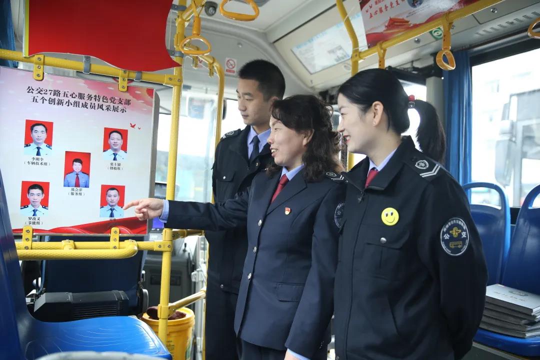 在熊會萍的帶動下,27路成立了黨員創(chuàng)新工作室,涌現(xiàn)出服務(wù)、節(jié)能、安全等多項創(chuàng)新成果,同時將黨建文化融入公交車廂,打造了“不忘初心、牢記使命”主題車廂,讓十米車廂更溫暖。