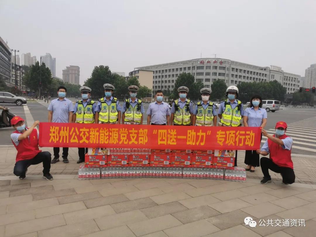 增強惠民之心、堅持服務利民。為方便市民出行,7月28日—8月28日市民可以免費乘坐公交車輛。集團公司黨委開展“四送一助力”專項行動,新成立的公交新能源公司積極承擔社會責任,黨支部書記侯揚帶領黨員志愿者分別來到鄭州交警三大隊所管轄區和金水區南陽路辦事處福園社區、防疫點等,送上礦泉水、方便面等防暑應急物品以及消毒液等防疫物資表達誠摯的敬意和深切的問候。