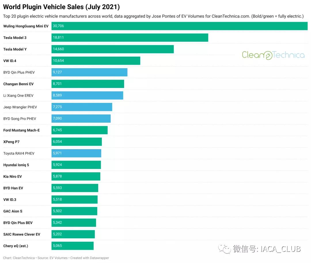 從公布的榜單來看,7月份全球電動車銷量前三名沒有變化,宏光MINIEV憑借30,706輛的成績繼續蟬聯銷量冠軍。排名第二和第三均來自特斯拉,其中Model 3為18,811輛,Model Y為14,660輛。需要注意的是,Model 3在7月份擊敗了Model Y,現在這兩款車型幾乎在相同的市場銷售,至于Model 3能否持續超越Model Y,還需要時間驗證。