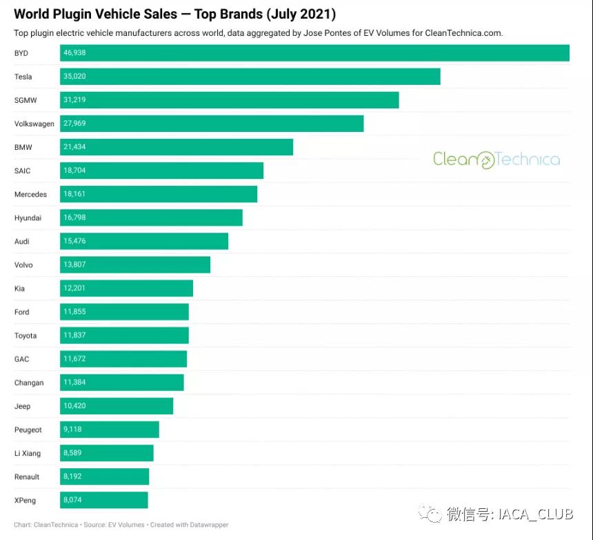 從7月份全球品牌銷量榜來看,7月份比亞迪以46,938輛蟬聯榜首,時隔六個月首次打敗特斯拉,而隨著比亞迪DMi車型的陸續交付和產能恢復,雖然不能確保比亞迪能夠獲得8月份全球電動車銷冠,但是在一定程度上給特斯拉較大的壓力。作為造車新勢力,理想和小鵬均擠進榜單,當前分列第18名和第20名,而蔚來排在第21位,與小鵬之間僅有100輛的差距。從前7月累計銷量來看,排名前三車企分別為特斯拉、上汽通用五菱、比亞迪,其中比亞迪打敗大眾汽車位列第三,預計10月份有望打敗上汽通用五菱,奪得年度亞軍。