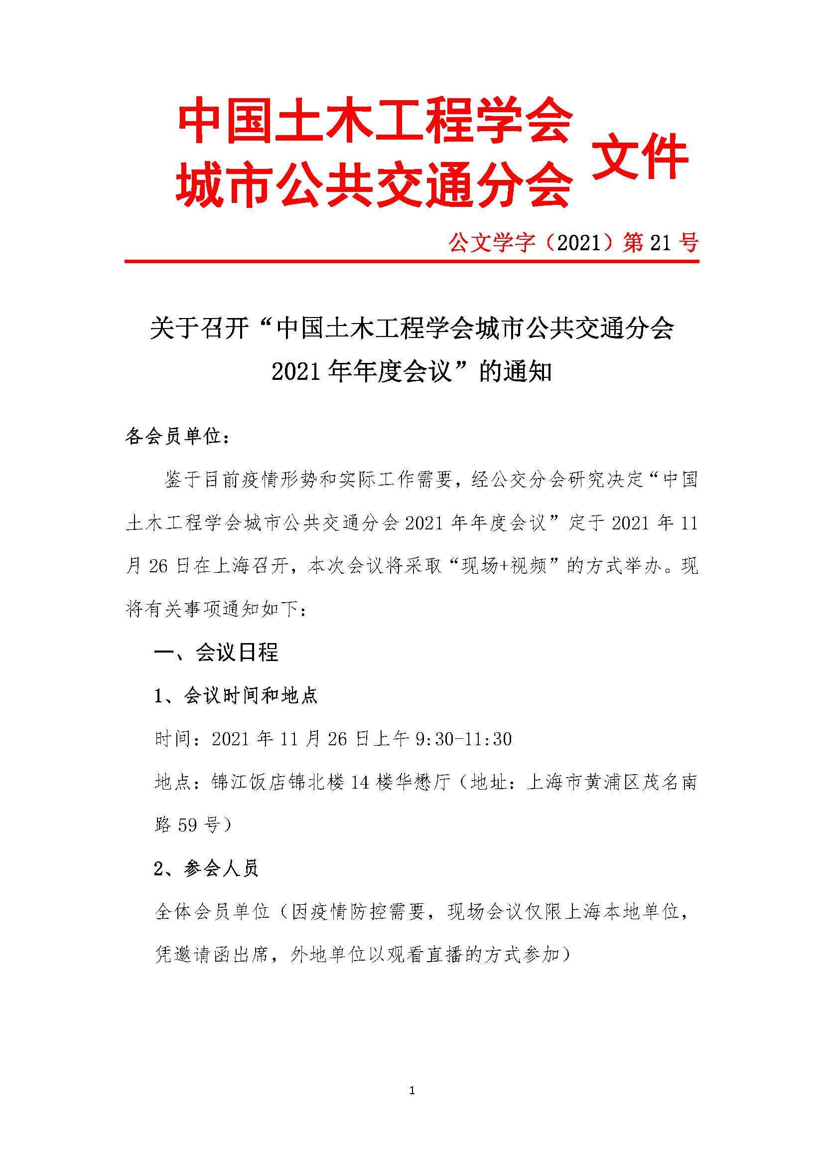 關于召開“中國土木工程學會城市公共交通分會 2021 年年度會議”的通知