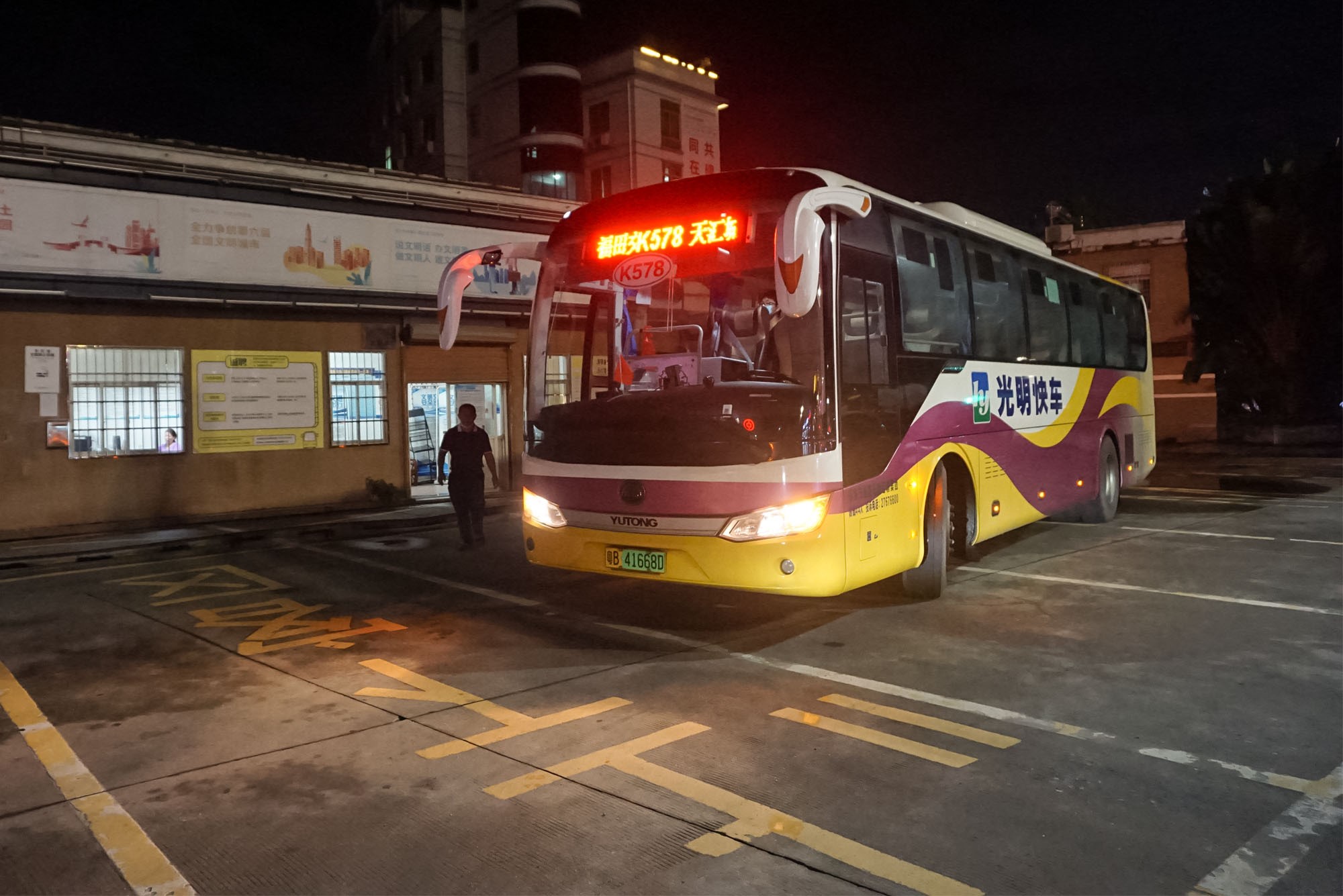 光明恒譽公司成立于 1998年,高速快線K578使用的車輛在全市配置最高,也最合適跑城郊高速快線,但國企因地方保護政策不得購買。(圖為該線路停運前發往市區的最后一班車,攝于2020年9月15日;照片中的場站現在即將拆遷)