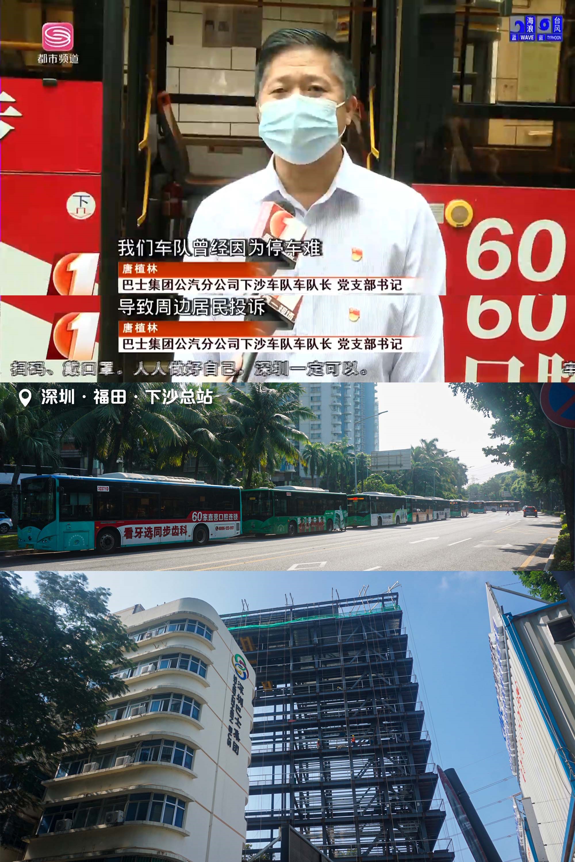 下沙片區加上輔道6車道的福榮路,高峰小時流量不到1400pcu,整天稀稀拉拉沒幾個車;公交車輛停路邊被趕,企業還得投資建可靠性存疑的機械立體車庫,怎么看都是捏軟柿子(電視節目截圖:深圳電視臺《第一現場》[5];照片攝于2021年11月)