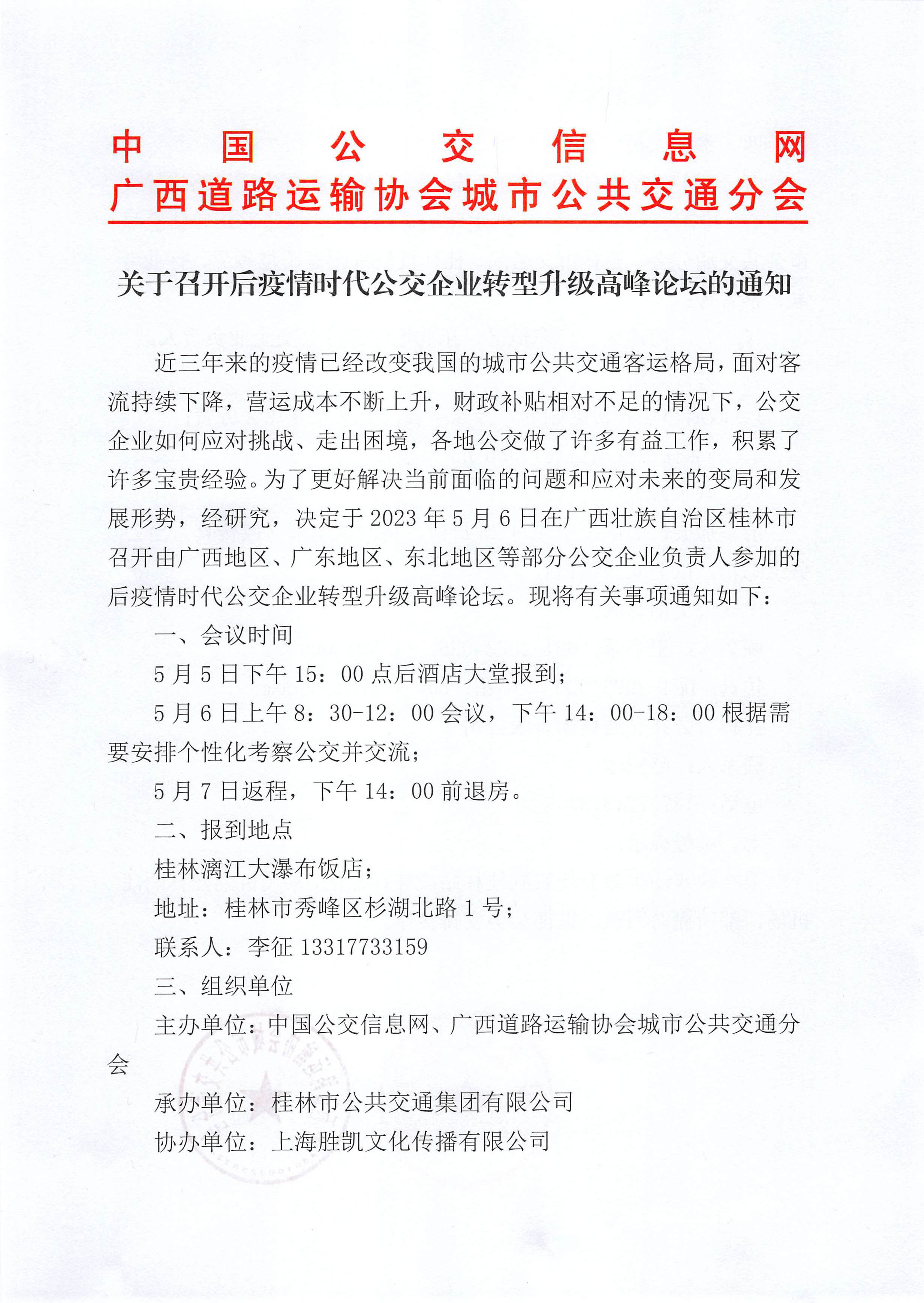 關(guān)于召開后疫情時(shí)代公交企業(yè)轉(zhuǎn)型升級(jí)高峰論壇的通知