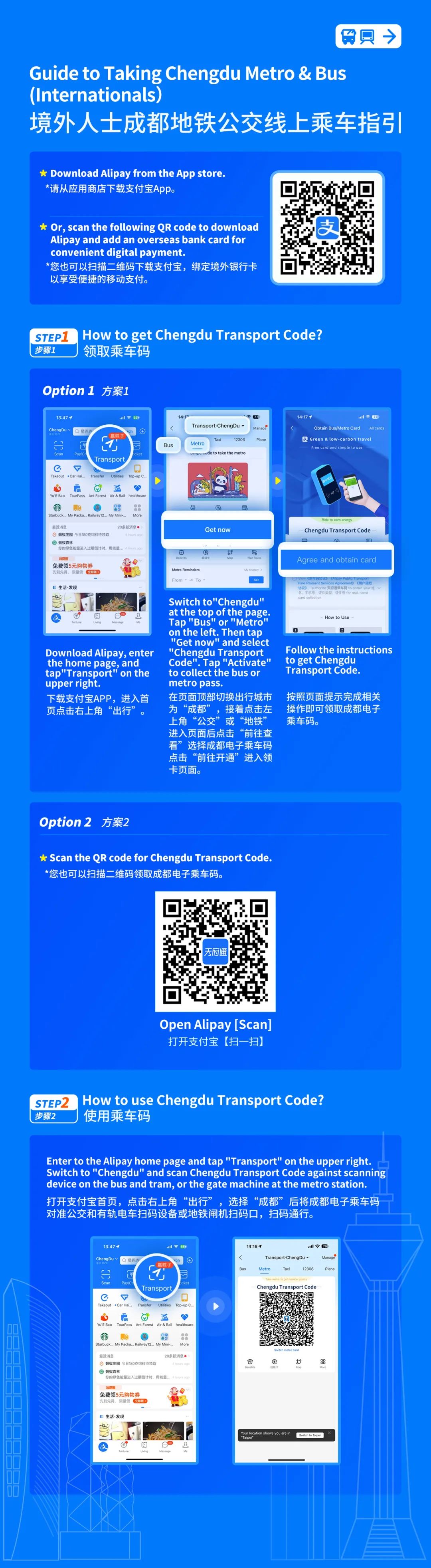境外人士領(lǐng)取“成都電子乘車(chē)碼”共有兩種方法↓↓↓