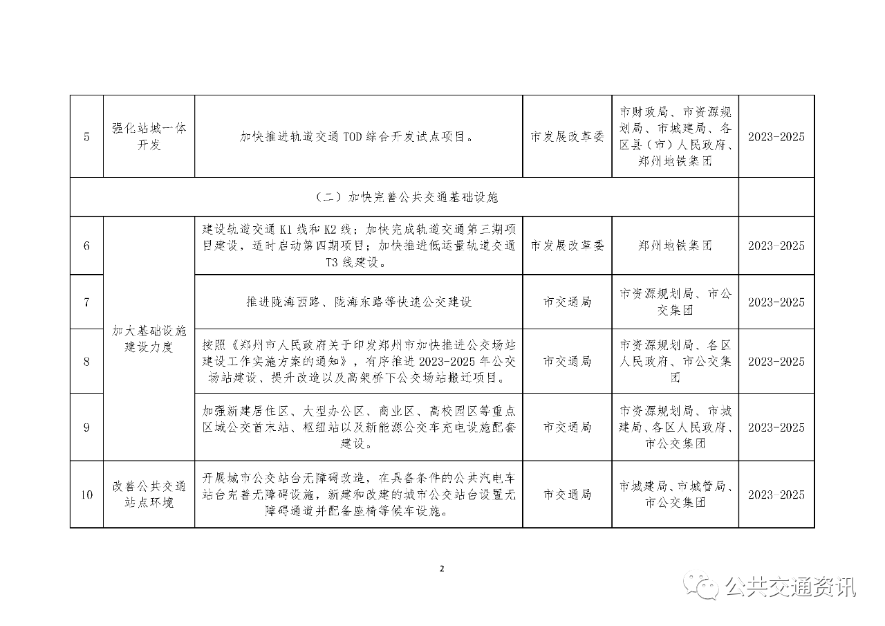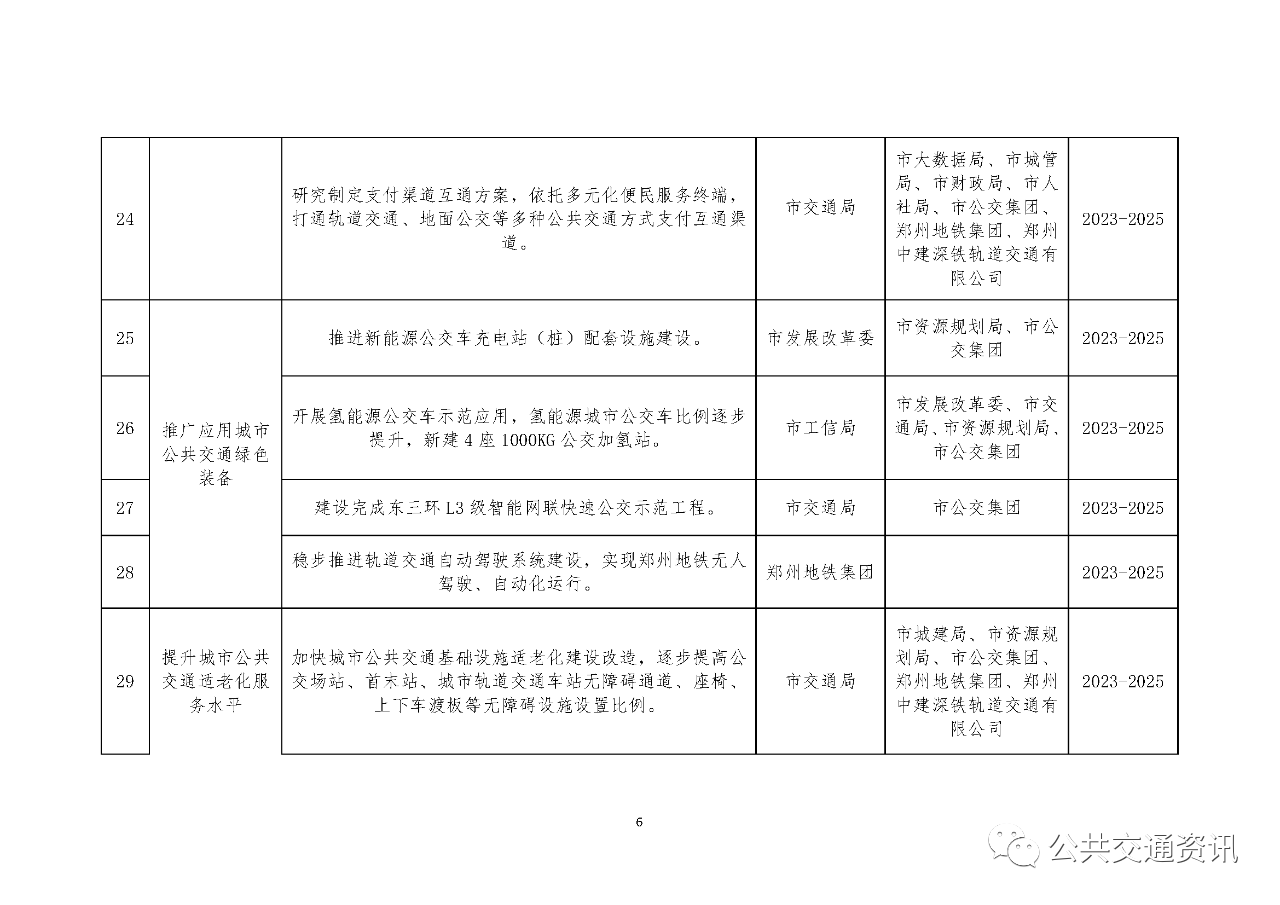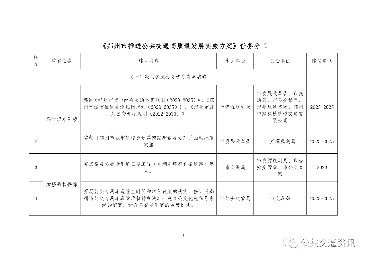 《鄭州市推進公共交通高質量發展實施方案》任務分工