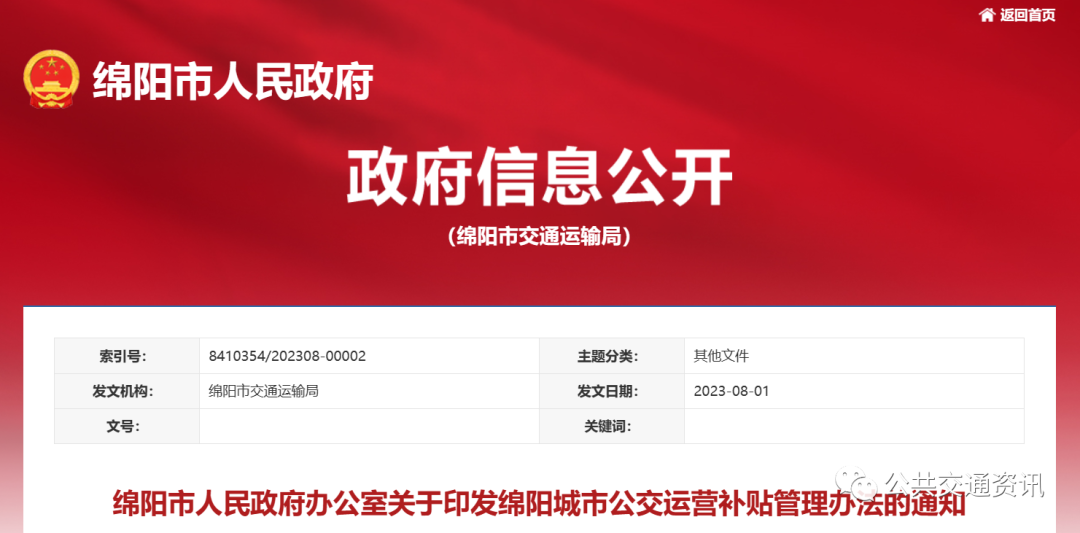 綿陽市人民政府辦公室關于印發綿陽城市公交運營補貼管理辦法的通知