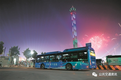 ■真情巴士啤酒節(jié)保障公交車穿梭在夜色中。
