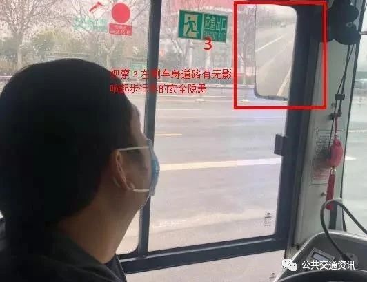 ——3、車輛離公交站牌20米,勤觀察右后視鏡里與其他交通參與者安全距離和站牌區(qū)域候車乘客的動態(tài)。