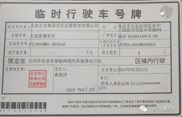 北京公交取得第一張大型普通客車自動駕駛路測牌照