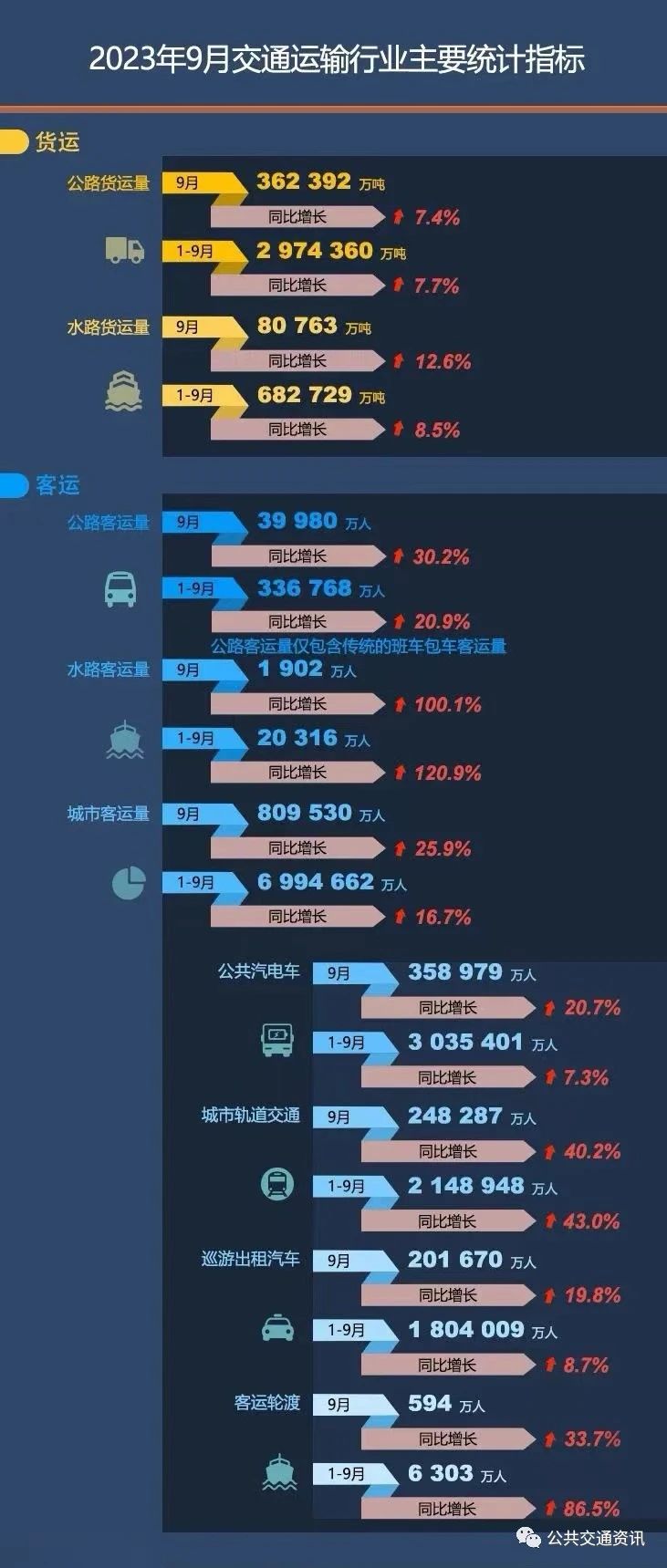 公共汽電車9月358 979萬(wàn)人次,同比增長(zhǎng)20.7%;1~9月3 035 401萬(wàn)人次,同比增長(zhǎng)7.3%