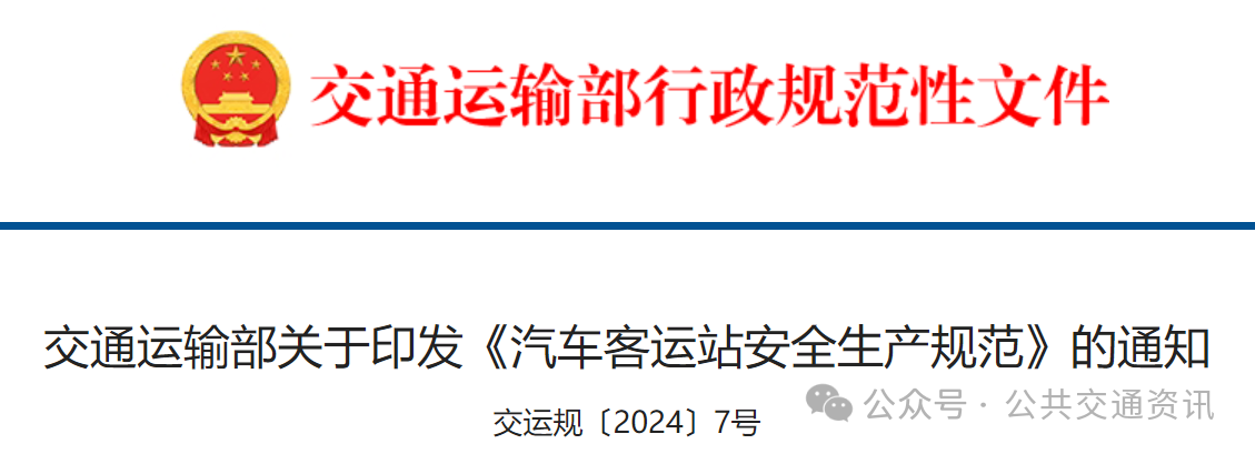 交通運輸部關(guān)于印發(fā)《汽車客運站安全生產(chǎn)規(guī)范》的通知各省、自治區(qū)、直轄市、新疆生產(chǎn)建設(shè)兵團交通運輸廳(局、委):現(xiàn)將修訂后的《汽車客運站安全生產(chǎn)規(guī)范》印發(fā)給你們,請遵照執(zhí)行。