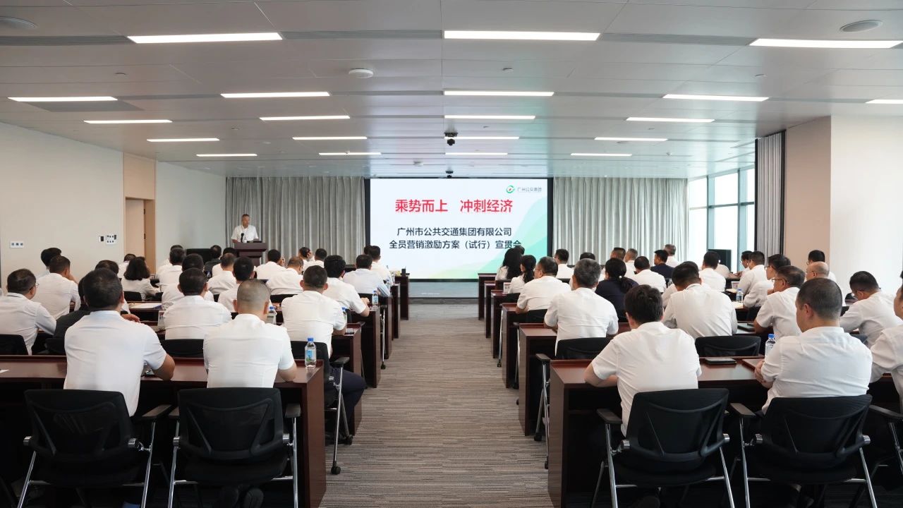 作為國資委監管企業,廣州公交集團高度重視,積極響應,及時出臺《廣州市公共交通集團有限公司全員營銷激勵方案(試行)》(以下簡稱“方案”),于2024年11月5日在集團總部召開宣貫會。會議由劉偉副總經理主持,集團領導、高管,各部室、屬下各單位主要負責人及分管業務負責人出席會議。