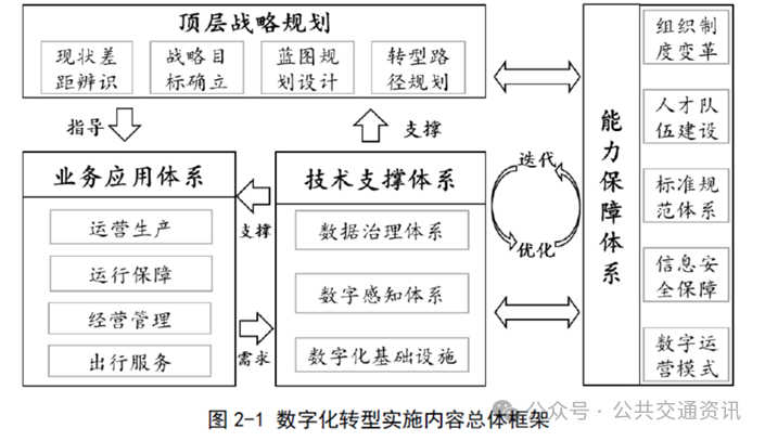 數字化轉型是一把手工程,涉及多個部門和單位,保障機制可以合理調配數字化轉型中的人力、物力和財力資源,優化發展環境,建立有效的分工合作機制和溝通協調渠道,加速數字化轉型進程。如廣州公交的數字化轉型規劃中提出建立領導小組工作會議機制、深化首席數據官聯席會議機制、建立人才培育交流機制、建立數字化人才激勵機制等。