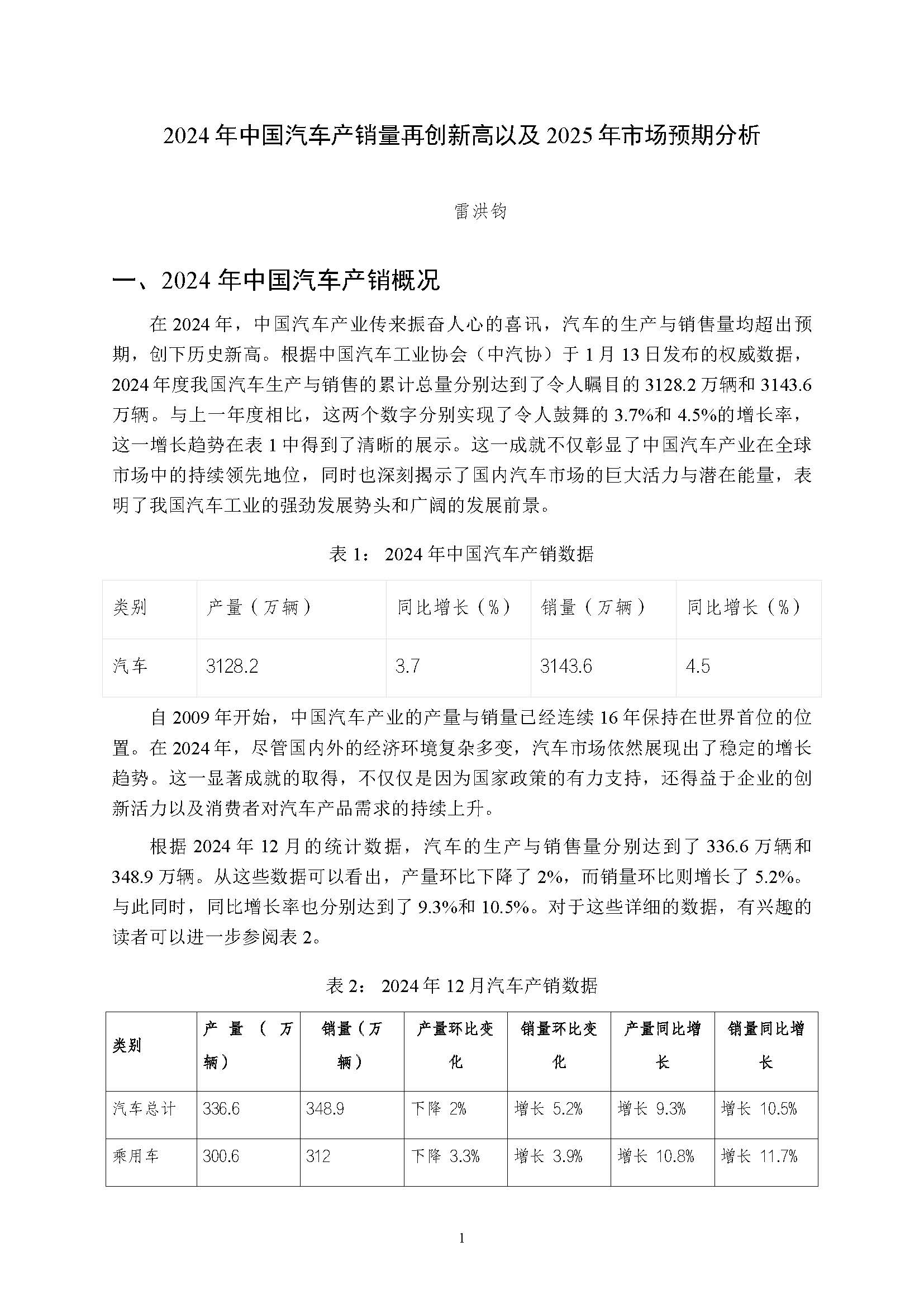 2024 年中國汽車產(chǎn)銷量再創(chuàng)新高以及2025 年市場預(yù)期分析