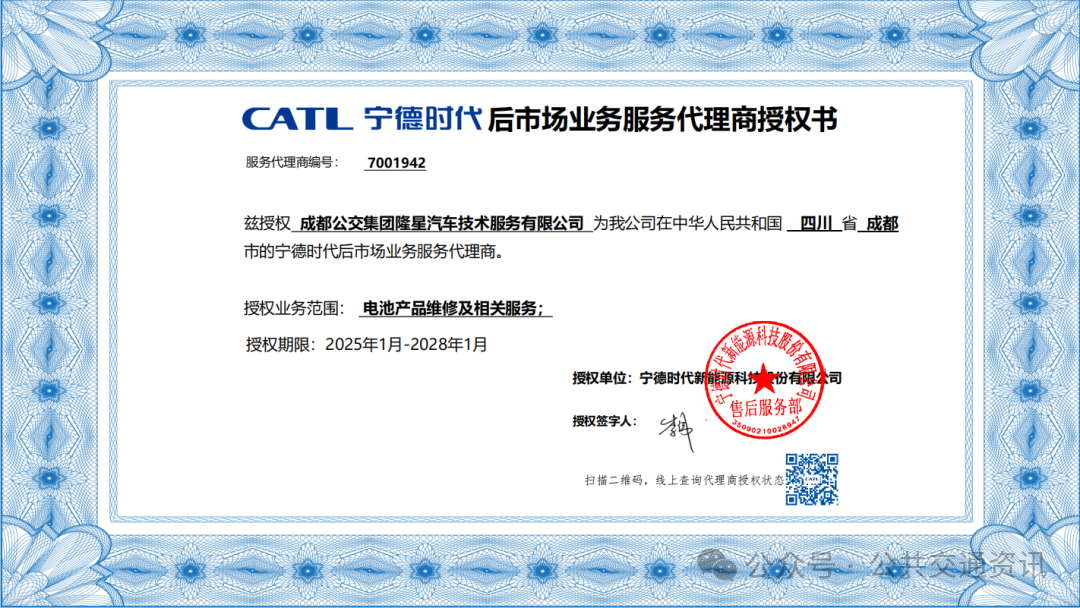 今年年初,成都公交與寧德時代正式簽訂“寧家服務(wù)”直營體驗(yàn)中心合作協(xié)議,成為成都地區(qū)獨(dú)家加盟商,獲得寧德時代產(chǎn)品、技術(shù)、品牌全維度支持?!皩幖曳?wù)”依托寧德時代成熟的電池后市場技術(shù)與管理體系,具備電池健康檢測、深度維修、保養(yǎng)維護(hù)、再生回收等全鏈條能力。