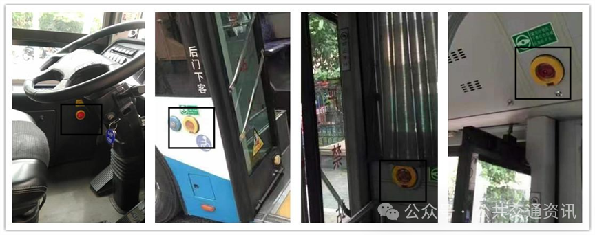 駕駛員發現火情立即停車開啟車門(車門開關失效的情況下,司機左手邊有斷氣閥開關,提起斷氣閥開關將氣壓排掉,推開前后客門或安全錘破窗),疏散乘客,并使乘客與車輛保持30米以上的安全距離。同時,駕駛員還應該注意避免乘客擁擠、踩踏等情況的發生,確保疏散過程的安全順利。