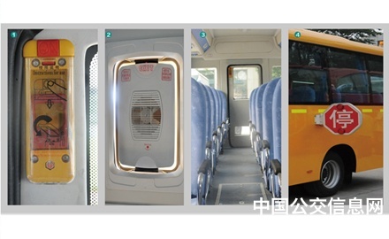 服務設施 CAN儀表,車內(nèi)外監(jiān)控系統(tǒng),無盲區(qū)倒車鏡,停車信號臂,前、后路牌(選裝),GPS,電動擊窗器(選裝),電子鐘,校車標志燈