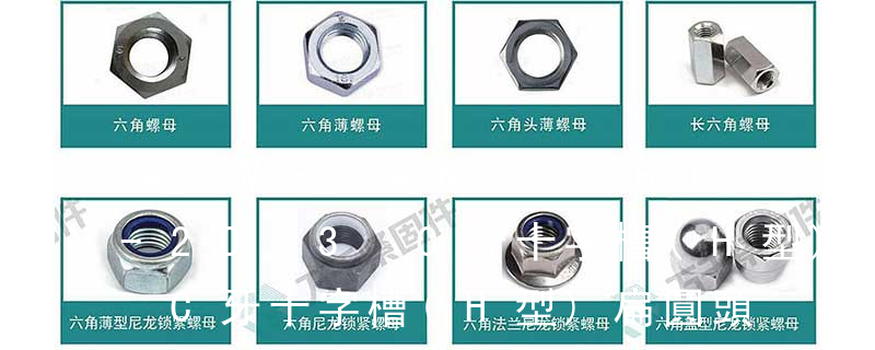 B.S.F. 標準惠氏細牙系列,一般用途圓柱螺紋 (英制牙)fine pitch thread 細牙 full thread 全螺紋 3 螺絲頭型 IHH=ind hex head 鋸 六角頭 PH=phillips 十字槽 Pan 圓頭(盤頭)Oval 半沉頭 H.W.H.. 六角小法蘭 1)開槽普通螺釘多用于較小零件的連接。它有盤頭螺釘、圓柱頭螺釘、半沉頭螺釘和沉頭螺釘。盤頭螺釘和圓柱頭螺釘的釘頭強度較高,瑁在普通的部件連接上;半沉頭螺釘的頭部呈弧形,安裝后它的頂端略外露,且美觀光滑,一般用
