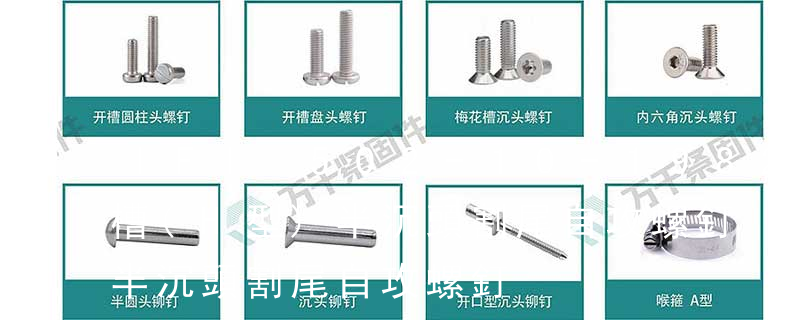 H.W.F. 六角大法蘭CSK 沙拉頭(沉頭)Large wafer 大扁平頭Bugle 喇叭頭Truss 盤頭帶墊Pozi 米制槽Phill 十字槽Serra-tion 墊下帶花Flower Head 開花頭6-bobes recess 內梅花Piston bolt 活塞螺釘Winding bolt 線圈螺釘Hexagon head 一般是指牙螺紋是自攻型的,使自攻作用的,不需要配合螺母使用。螺釘頭部有很多分類,有外六角頭的,有盤頭的,有沉頭的,有內六角頭的。傘頭的,帶墊頭的等等。而尾部一般是尖端的。使自攻作用的。自攻螺絲也叫自攻螺釘。