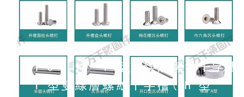 開槽圓柱頭螺釘 Slotted cheese head screws 開槽盤頭螺釘 Slotted pan head screws 單耳止動墊圈 Tab washers 開口銷 Split cooter pins 開槽半沉頭木螺釘 Slotted raised csk head wood screws 開槽半圓頭木螺釘 Slotted 不同點:1、自攻螺釘的螺絲一般為機螺紋,而 自擠螺釘采用自攻螺紋。2、在扳擰方式中, 自擠為確保高速自動采用了裝配扳手,而自攻螺釘采用開槽。螺釘型號如下:(1)十字槽盤頭自攻螺釘:GB/T6560,ASME B18.6.4,SAE